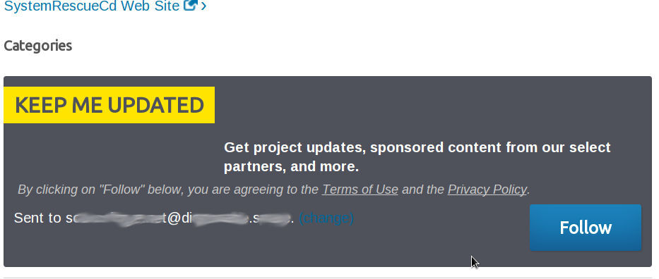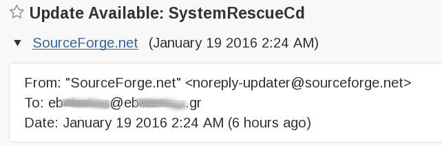 And that’s not even the big issue here, cause I do want to get notifies whenever SystemRescueCD do updates.